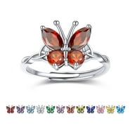 Bestyle 925 Sterling Silver Butterfly Rings, July Ruby Birthstone Adjustable Open Band Ring Jewelry Gift Birthday Christmas Valentines Day