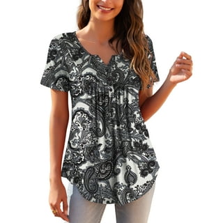 a.Jesdani Womens Plus Size Tunic Tops Short Sleeve Casual Floral Henley Shirts m-4x